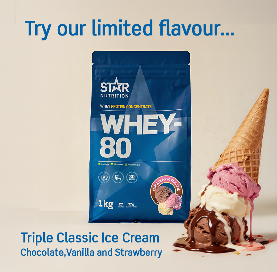 Whey-80® – Star Nutritionin korkealaatuinen proteiinijauhe urheilijalle, joka haluaa paremman palautumisen, lisää lihasmassaa ja tehokkaamman rasvanpolton!
